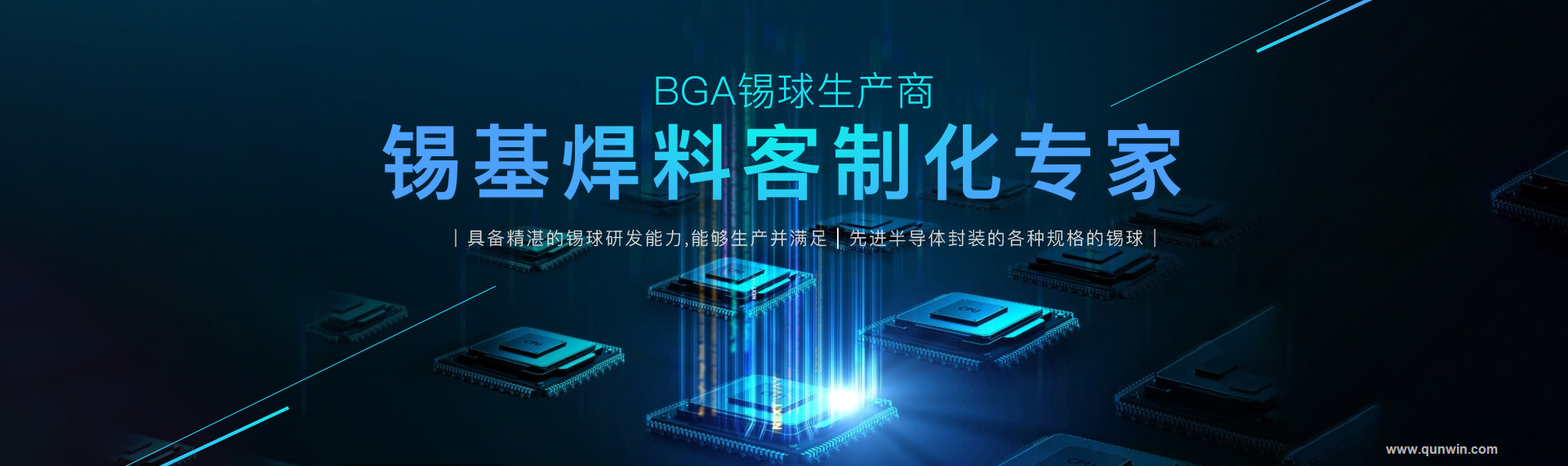 重慶群崴電子材料有限公司是一家專業從事電子封裝材料研發和生產的國家高新技術創新型企業。公司擁有多項相關核心技術專利,是國內霧化成型BGA錫球技術專利持有人。其中0.25mm 以下的BGA 錫球被列為國家863(“863”計劃)重點項目之一。